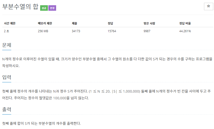 첫째 줄에 정수의 개수를 나타내는 N과 정수 S가 주어진다. (1 ≤ N ≤ 20, |S| ≤ 1,000,000) 둘째 줄에 N개의 정수가 빈 칸을 사이에 두고 주어진다. 주어지는 정수의 절댓값은 100,000을 넘지 않는다.