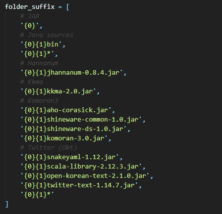 해당 함수에 # Java sources와 # Twitter (Okt) 주석이 있다. 해당 주석의 아랫줄을 각각 보게 되면 '{0}{1}*'이라는 코드를 알 수 있는데 해당 코드에서 *(별표, asterisk)를 지워야 한다.