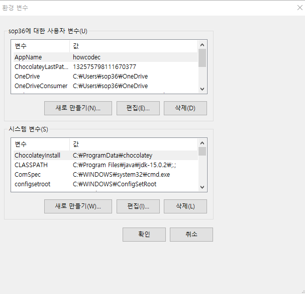 [시스템 변수]에 [새로 만들기]를 눌러준다.