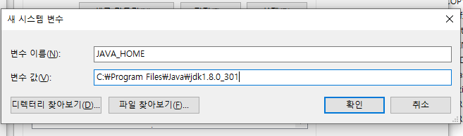 위 사진과 같이 변수 이름은 JAVA_HOME으로 변수 값은 자신의 JDK의 경로로 설정해준다.