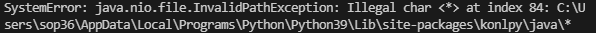 자연어 처리를 위해서 konlpy를 설치했는데 아래와 같은 오류가 나왔다.